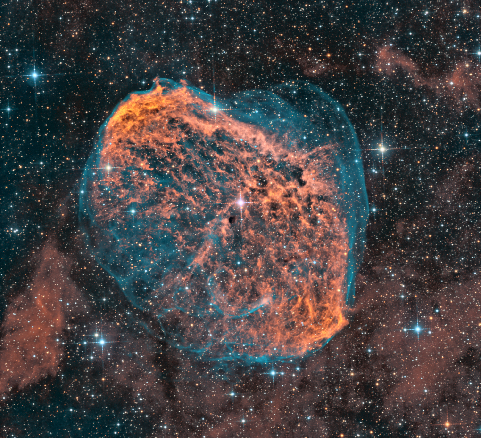 Processing: Bias, Darks & Flat calibration DBE Deconvolution Histogram & Curves adjustments HDRMT LRGB combining - L(Ha,Oiii) nebula color (Ha,Oiii), stars color (RGB) Noise reduction: ACDNR Software: PixInSight |